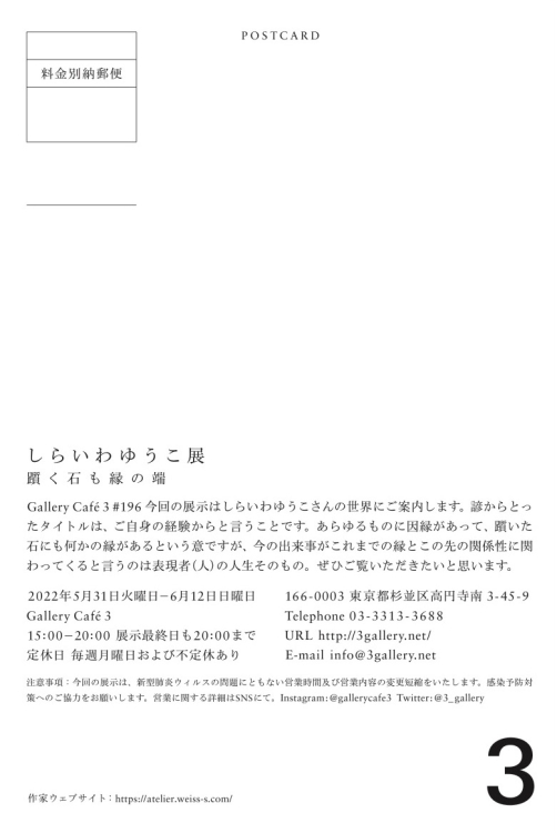 しらいわゆうこ展「躓く石も縁の端」OPEN